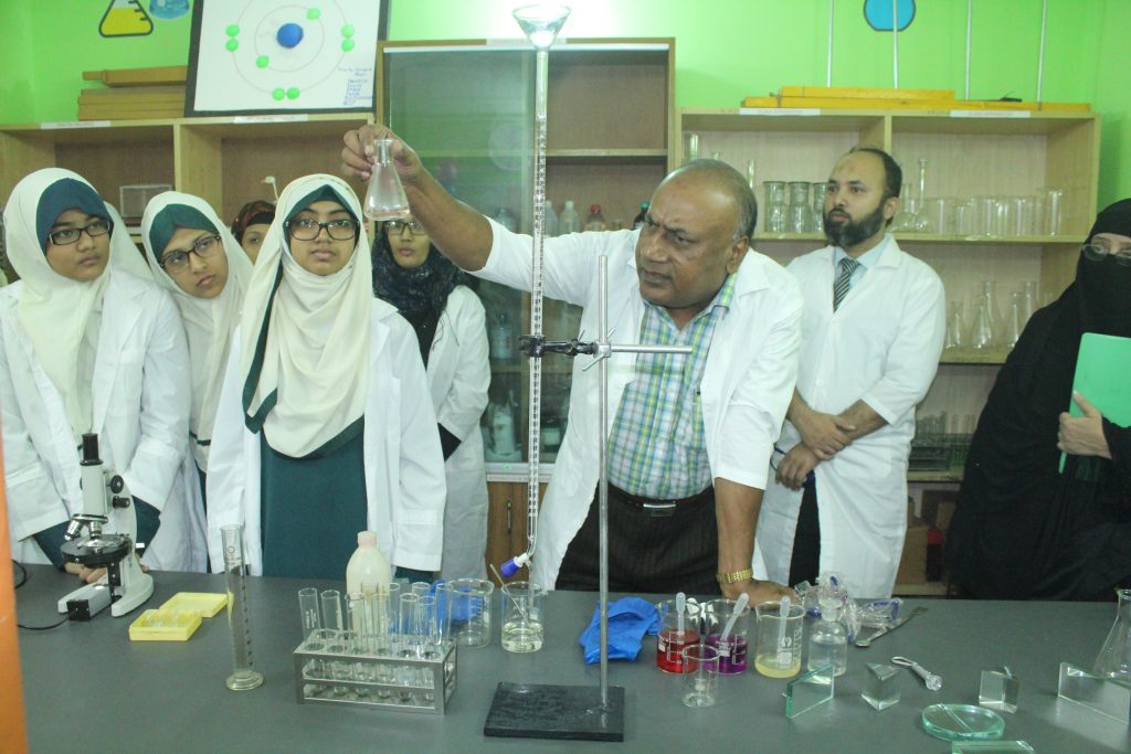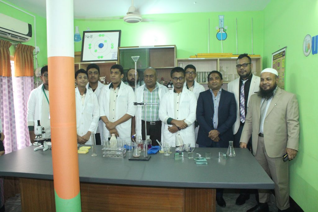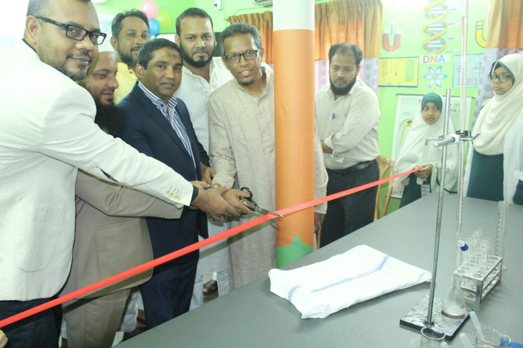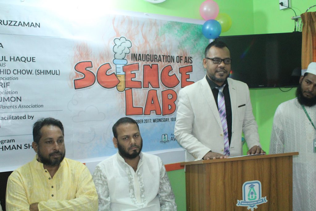 A comprehensive science lab was inaugurated by the Chairman Khan Mohammad Akhteruzzaman at Averroes International School to encourage scientific innovation among the students. The students will get a chance to work with tools and equipment to understand the concepts of science, technology, engineering and mathematics. These labs will have do-it-yourself kits and equipment on science, electronics, robotics, open source micro controller boards, sensors, and computers. AIS is providing classes every week for physics, chemistry, biology and general science. Addressing the gathering, Managing Director & CEO Anisur Rahman Shohag said that young minds will get a chance to work here and understand different aspects of science and technology. We will train our students for regional- and national-level competitions, exhibitions, workshops on problem solving, designing and fabrication of products and will provide practical classes at regular intervals. The Chairman, Secretary and Joint Secretary of Parents’ Council were the special guests of the inauguration ceremony. Students’ representative Fatima Bint Afzal has shown her gratitude to the initiatives of the management and delivered a speech on behalf of the students of AIS. Department Head of Chemistry, Professor Dr. Enamul Haque demonstrated some experiments along with the students of Grade VIII.