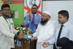 The honorable chief guest Mr. Anisur Rahman Shohagh mentioned at his speech that, as a result of successful farsighted policy started by this modern ICT Lab and continuing by students various activities. He said computer education has been one of the most important needs in today’s world. To be more efficient and competitive in today’s scenario one must learn ICT education. So incorporating this fact, the student from grade 2 to A Level will be studying ICT as a compulsory subject. After his speech he presented a power point presentation, which was more effective & enjoyable. Then he performed a Quiz program with Class Eight students in two sessions, one for the girls and another for the boys. One girl & one boy have gotten two prizes for answering highest quizzes.